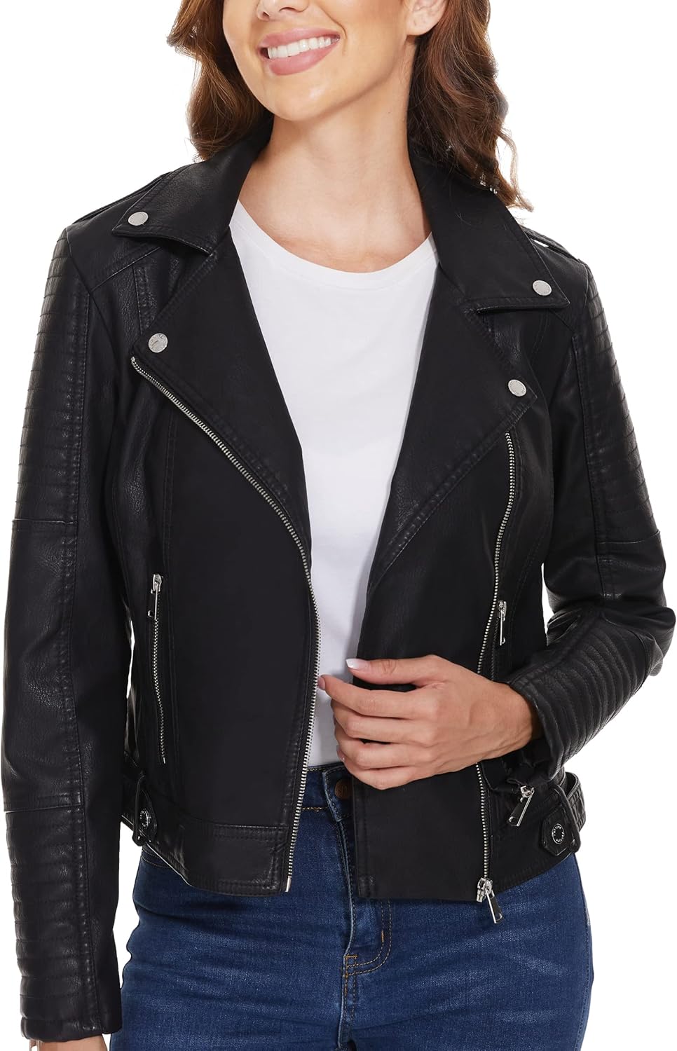 Women’s Faux Leather Jackets, Zip Up Motorcycle Short PU Moto Biker Outwear Fitted Slim Coat