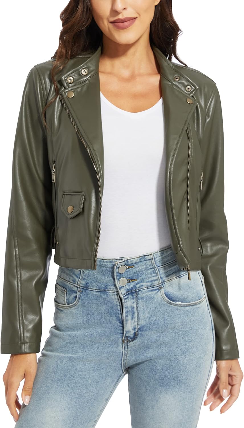 Women’s Faux Leather Jackets, Zip Up Motorcycle Short PU Moto Biker Outwear Fitted Slim Coat
